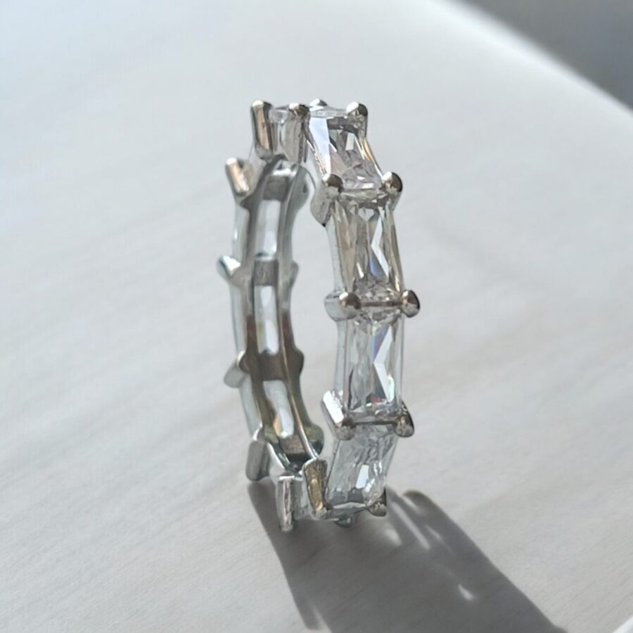 כסף טהור סטרלינג סילבר 925 בשיבוץ זירקוני באגט (זירקונים מלבניים)