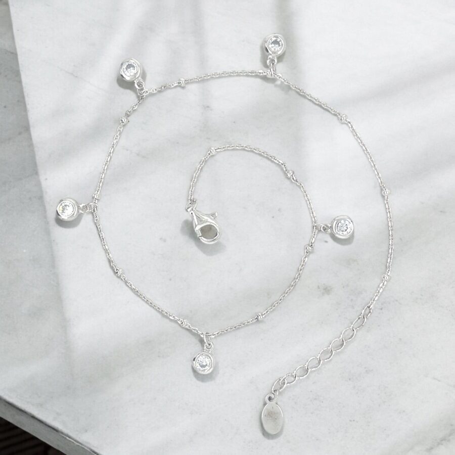 צמיד לרגל עשוי כסף טהור 925 בשילוב 5 זירקונים תלויים