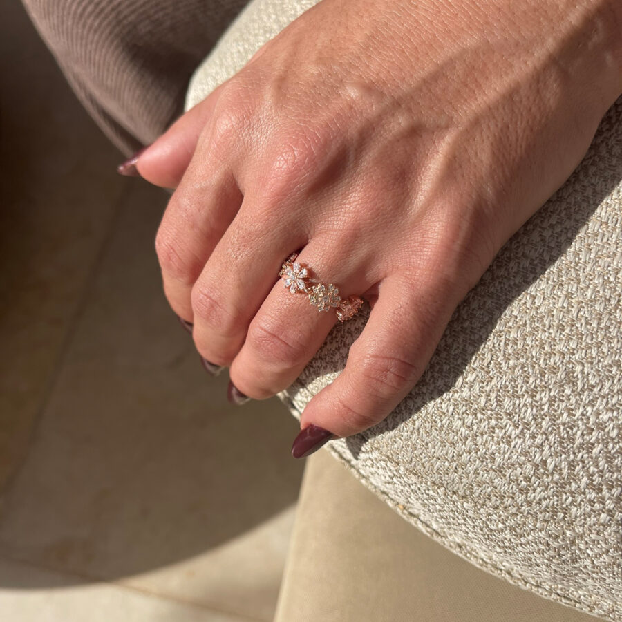 חומר: כסף טהור סטרלינג סילבר 925, בציפוי זהב אדום ובשיבוץ זירקונים.